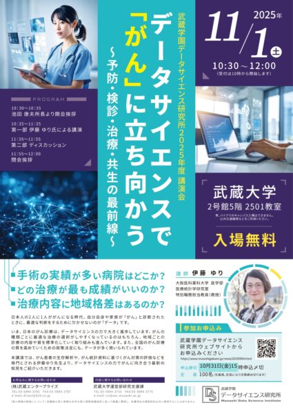 武蔵学園データサイエンス研究所2025年度講演会データサイエンスで『がん』に立ち向かう~予防・検診・治療・共生の最前線~
