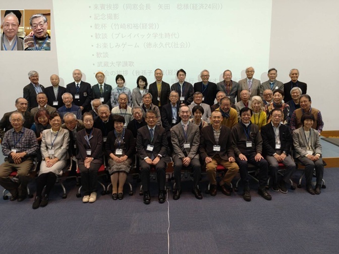 締めは、元応援団副団長の鈴木義隆氏(経営)のリードで武蔵大学讃歌を熱唱、岡本弘正氏(経済)の挨拶で、来年の再会を誓いながらの散会となりました。