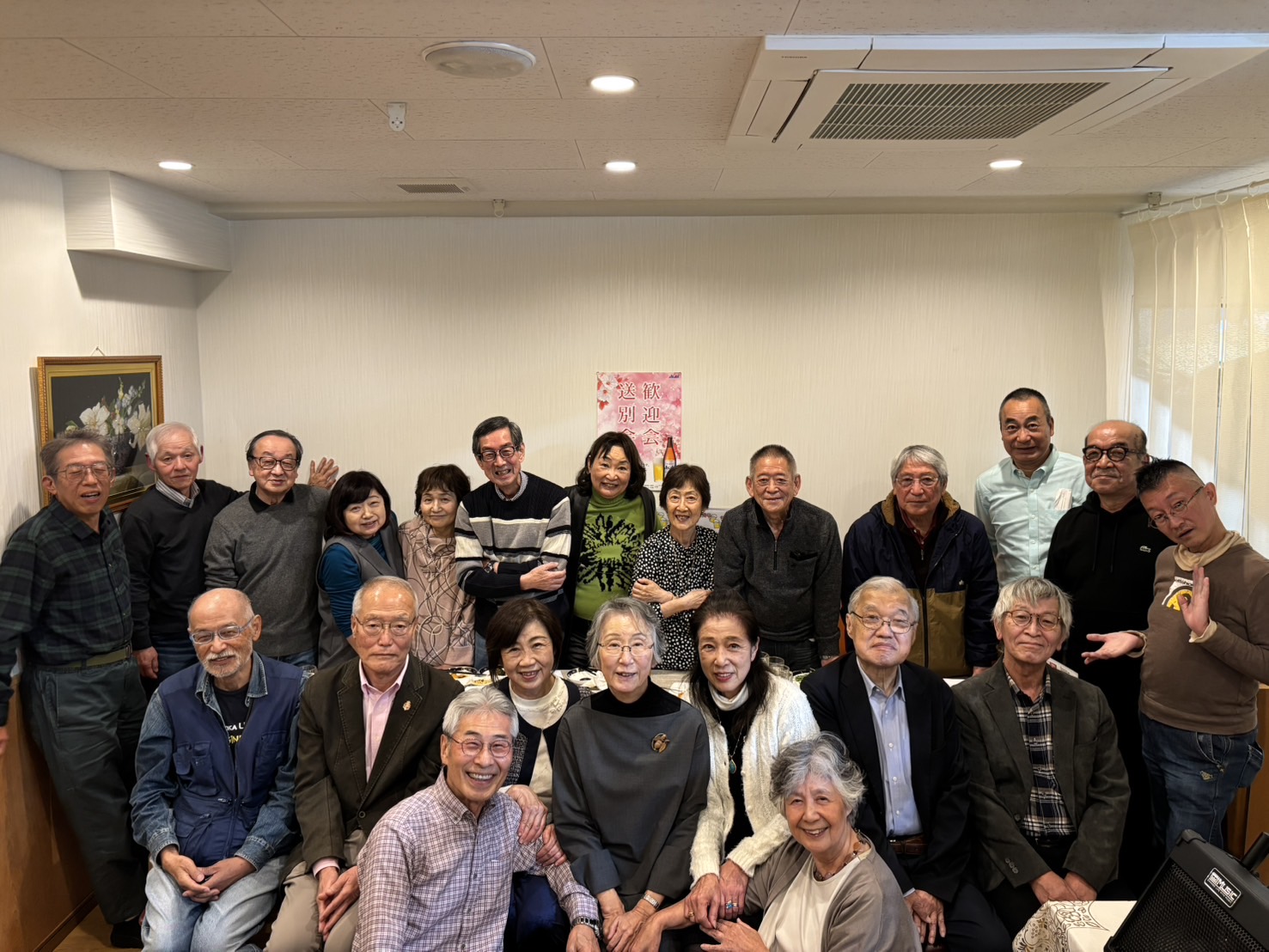 進行は、いつも通りの名司会者の中山(27回)さんで、開会の挨拶は志方(24回生)、藤澤(17回)さんが乾杯の挨拶をしました。懇親会に入ると、各テーブルでは笑い声が絶えず、料理を囲みながら、学生時代の話題に花が咲き、和やかな雰囲気で盛り上がっていました。暫くたってから、近況報告等の一分間スピーチに入りましたが、話好きの方が多く1時間20分以上かかってしまいました。しかし、懐かしい思い出が語られ、近況が共有される場は、皆の心を結び直す貴重な機会だったと思いました。